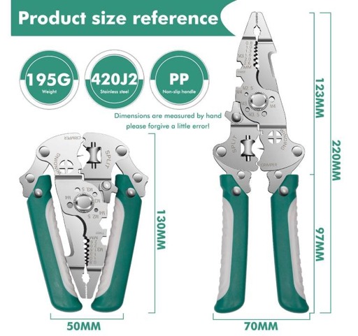 - Supports multiple wire sizes and functions (strip, cut, wind)