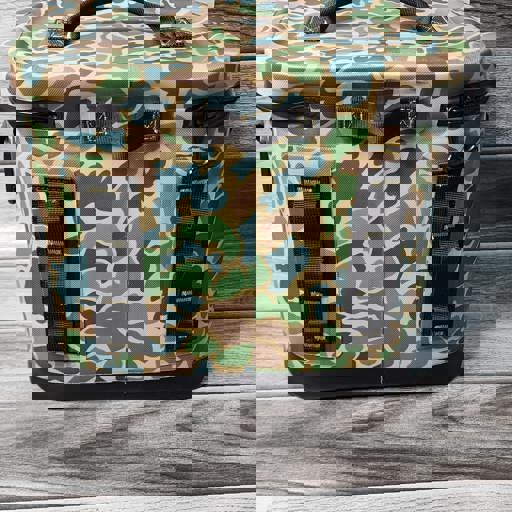 Meet the leakproof, tough-as-nails soft cooler designed for portability and performance. The YETI Hopper Flip in the popular, sold-out Wetlands Camo pattern is engineered to carry your provisions all day long, featuring a customized "Little Lodge Farms" logo on the front.