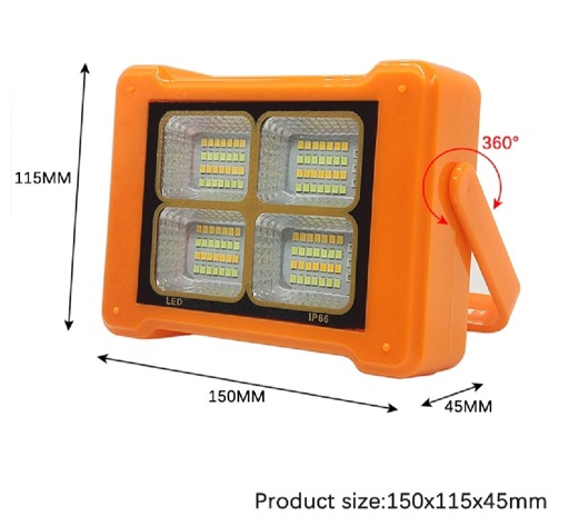 LONG BATTERY LIFE and RECHARGEABLE FROM THE SOLAR: The solar work light has a solar panel on the back and a 12000mAh rechargeable battery. The portable work light features an energy-efficient USB input that can be charged with electricity as well as a solar panel that allows it to be charged during the day.