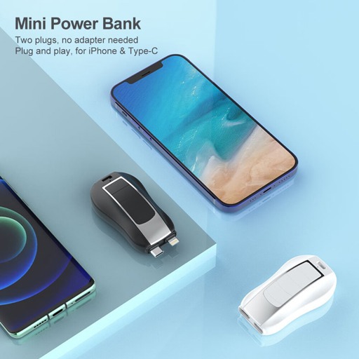 Portable Power Bank Charger Keychain Power Bank 1500mAh - for iPhone/Type-C Huawei Samsung