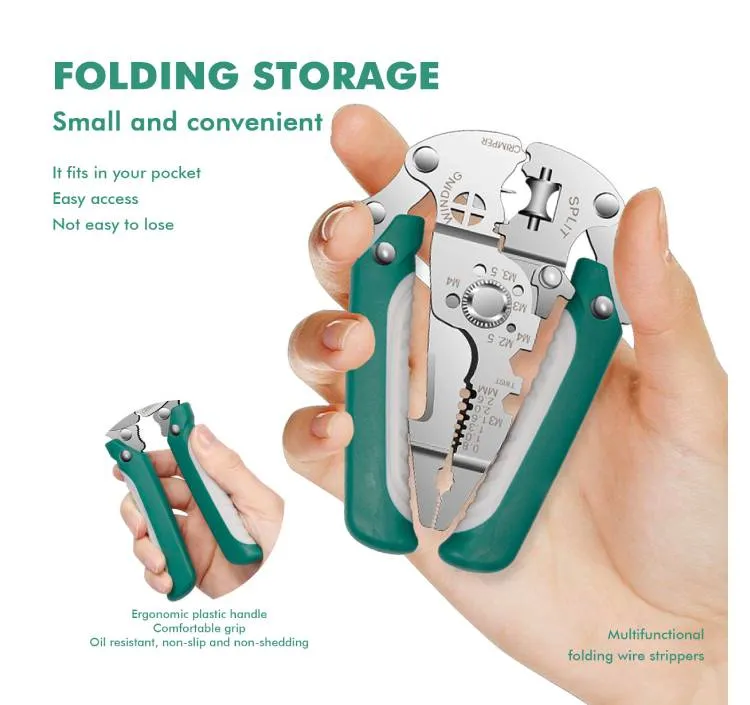 Make your electrical tasks easier with this multifunctional folding wire stripper. Its compact, foldable design fits right in your pocket—easy to carry, hard to lose. Crafted with ergonomic, non-slip handles for comfort and control, it's perfect for stripping, cutting, and winding wires effortlessly. Whether you're a DIY enthusiast or a professional electrician, this tool delivers precision and convenience in one sleek device.