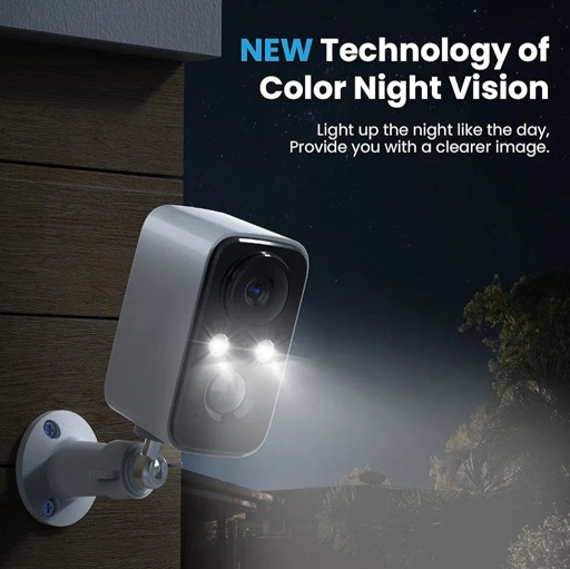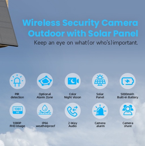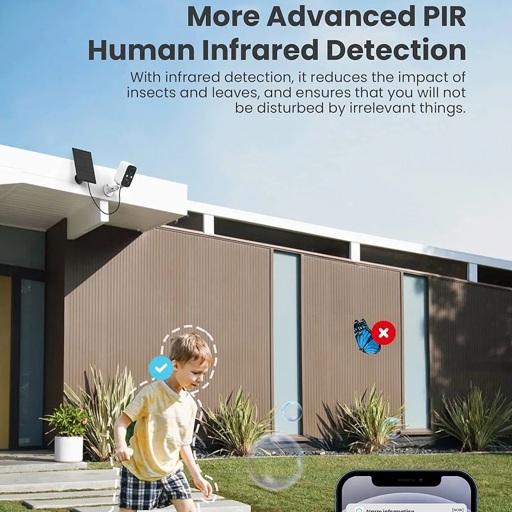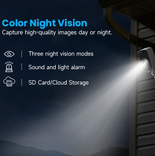 Security Camera System Wireless Solar, Home Security Camera with Color Night Vision, PIR Human Detection, 2-Way Talk, IP66 Waterproof, SD Card/Cloud Storage