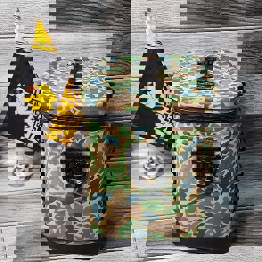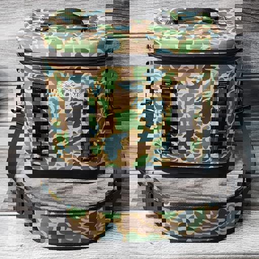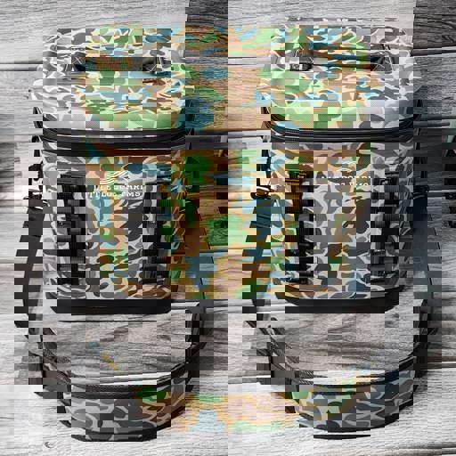 Meet the leakproof, tough-as-nails soft cooler designed for portability and performance. The YETI Hopper Flip in the popular, sold-out Wetlands Camo pattern is engineered to carry your provisions all day long, featuring a customized "Little Lodge Farms" logo on the front.
